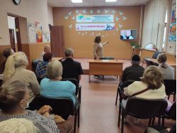 В местной организации ВОС г.Кемерово специалист библиотеки рассказала присутствующим о жизненном и творческом пути одной из самых ярких актрис театра и кино. Читатели узнали, что будущая актриса родилась в Кишинёве и только с третьего раза поступила в Школу-студию МХАТ, что фильмография актрисы насчитывает более 100 ролей в кино и множество театральных образов. Крючкова сыграла в фильмах «Большая перемена», «Родня», «Приключения Шерлока Холмса и доктора Ватсона», «Старший сын» и многих других.