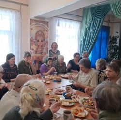 За чайным столом собравшиеся дружно отметили славянский народный праздник Масленицу, блинами с ароматным мёдом и сметаной, да вкусными угощениями.