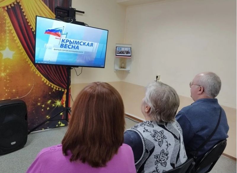 Читателям был показан отрывок из документального фильма корреспондента телеканала «НТВ» Сергея Холошевского «Крымская весна». В фильме демонстрируются реальные факты, интервью с главными действующими лицами, описывающие, как жители полуострова отстояли свою независимость. Фильм о событиях февраля-марта 2014 года в Крыму и Севастополе сопровождался тифлокомментарием, который к просмотру подготовила библиотекарь.