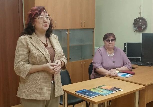 Гостями библиотеки стали Дина Нагорнова (художественный руководитель Дворца культуры Ясная Поляна г.Прокопьевска, с 2025 года член Союза писателей России, поэт и писатель, автор более 10 книг) и Римма Храмцова (член клуба, победитель литературных конкурсов, в том числе XIV межрегионального фестиваля-конкурса «Кузбасский Зимородок» в номинации «Пейзажная лирика»).
