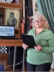 19 марта для читателей библиотечного пункта г.Мариинска Специальной библиотеки Кузбасса для незрячих и слабовидящих, членов Мариинской местной организации Всероссийского общества слепых проведён литературно-поэтический час «Природа и поэзия – музыка души и тела». Мероприятие, посвящённое Всемирному дню поэзии и Всемирному дню воды, прошло с участием сотрудников Централизованной библиотечной системы Мариинского муниципального округа.