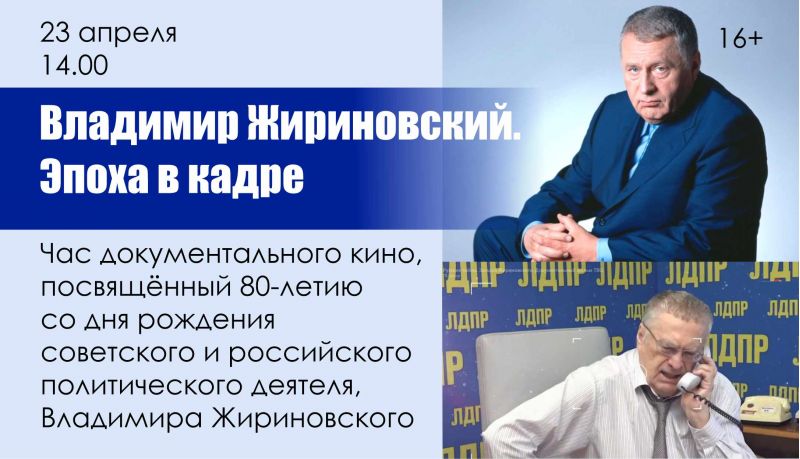 23 апреля в 14.00 посетителям Кузбасского инклюзивного коммуникационного центра досуга Специальной библиотеки Кузбасса для незрячих и слабовидящих будет представлен час документального кино «Владимир Жириновский. Эпоха в кадре». Мероприятие, посвящённое 80-летию со дня рождения советского и российского политического деятеля, основателя и председателя Либерально-демократической партии России Владимира Вольфовича Жириновского, проводится в рамках заседания тифлоклуба «Наше наследие».