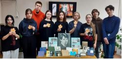 Библиотекари Центральной библиотеки познакомили молодых людей с интересными фактами биографии поэта, дополнением стал видеофильм «Даты жизни», воспоминания современников. Фильм «Константиново» рассказал о музее-усадьбе в селе Константиново, на родине поэта. Продемонстрированный отрывок из фильма «Есенин» (поединок Есенина и Маяковского) особенно ярко показал его как неординарного человека и талантливого поэта. Нейросеть вдохнула жизнь в портреты русских классиков. Студенты имели возможность видеть, как улыбается живой Есенин, разговаривает, читает стихи и даже поет. Сам Есенин еще в юности писал: «Меня начнут понимать через сто лет после первой публикации»… Его предсказание сбылось. Имя поэта известно каждому. И мы не только понимаем, но и любим его стихи. Это доказала очередная поэтическая встреча. Ребята получили на память кленовые листочки с напечатанными на них стихотворениями С. Есенина об осени.