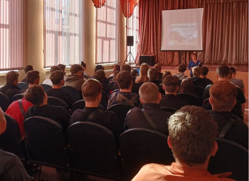 26 сентября ведущий библиотекарь Центральной городской библиотеки Земляных Ирина Николаевна провела для студентов Беловского политехнического техникума урок безопасности «Высокая цена беспечности».