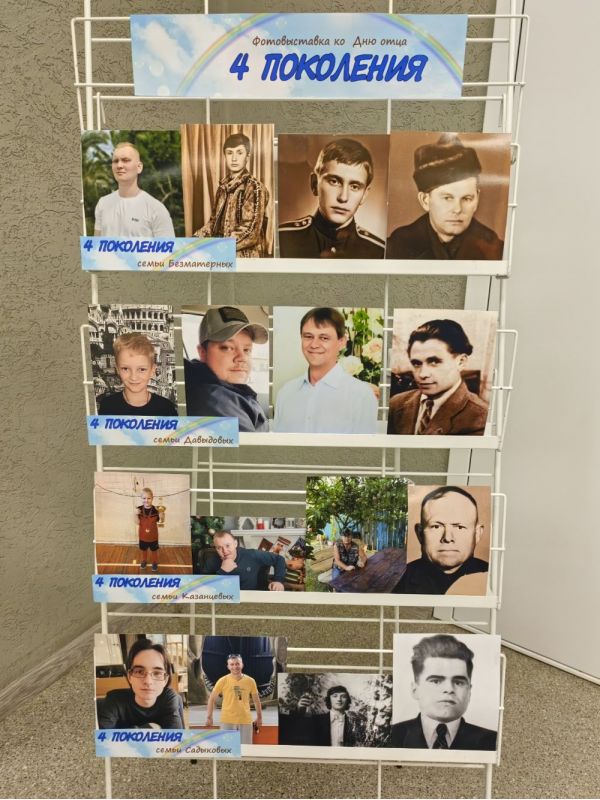 Оформленная в библиотеке «Бачатская» фотовыставка «Четыре поколения», приуроченная ко Дню отца, стала настоящим праздником тепла, дружбы и единства поколений. На выставку представлены уникальные архивные снимки, передающие дух прошлого и настоящего. Каждый кадр повествует свою собственную историю любви, уважения и ценность от поколения к поколению, отраженных сквозь призму традиций и воспитания.