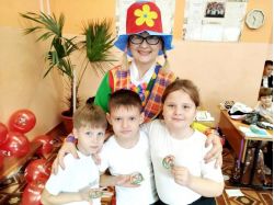 Вместе с клоунами Ириской и Шустриком ребята приняли участие в конкурсах: «Вундеркинды», «От А до Я», «Найди свою половинку», «Советы первоклассникам». Показали всё, чему уже успели научиться в школе.