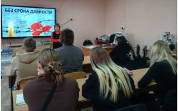 Сегодня ведущий библиотекарь Центральной городской библиотеки Земляных Ирина Николаевна, провела для студентов Кузбасского многопрофильного техникума час-реквием «Без срока давности» и рассказала об этих страшных страницах в истории нашей страны.