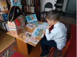 В ходе мероприятия ребята познакомились с творческой биографией английского писателя, интересными фактами написания романа «Остров сокровищ», а также, проверили свои силы в заданиях на логику, внимание и наблюдательность: «Доберись до клада», «Морские загадки», «Найди 10 отличий», «Толковый словарь юного пирата» и получили в награду шоколадно-золотые монеты из сундука сокровищ капитана Флинта.