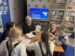 Ведущая Татьяна Валерьевна показала и зачитала письмо, которое написала воспитанница православной гимназии г. Оренбурга ее супругу, который сейчас находится в зоне СВО. Это письмо семья Татьяны Валерьевны хранят в семейном архиве.Для поддержки боевого духа военнослужащих юные читатели библиотеки написали письма для отправки в зону СВО. Каждый нашёл свои слова поддержки для участников специальной военной операции: благодарили за стойкость и мужество, рассказывали о значимости происходящего в мире и для каждого из нас. Ребята выразили признательность российским солдатам, написали, что они гордятся настоящими защитниками Родины и желают им скорейшего возвращения домой.