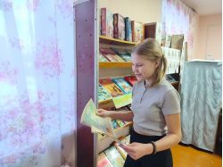 Ведущая библиотекарь Татьяна Николаевна Чайкина познакомила ребят с выставкой книг «И след мой в мире есть» и рассказала краткую биографию поэта Сергея Есенина.