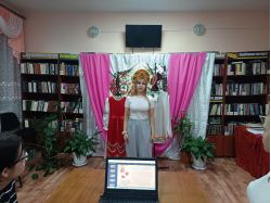 Библиотекарь Татьяна Викторовна Буданаева провела для юных посетителей настоящее погружение в историю. С помощью красочной слайд-презентации она рассказала о том, как менялся русский национальный костюм, начиная с эпохи Древней Руси и вплоть до девятнадцатого века.