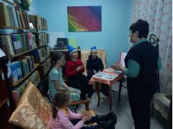 Библиотекарь Анна Тальгатовна Сопова пригласила ребят в литературную гостиную «В Новый год за сказками». В детский отдел библиотеки перед Новым годом было поступление новых книг, и поэтому мероприятие началось с обзора новинок и новогодней тематической полки. Сестёр Аделину и Викторию Лоскутовых заинтересовали книги «История новогодних украшений. Детская энциклопедия» и «Снежные сказки волшебной зимы».