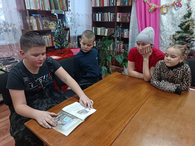 Библиотекарь Татьяна Викторовна Буданаева поприветствовала семьи Тупилкиных и Пономаревых, пригласив их окунуться в мир любимых зимних историй. С азартом и воодушевлением семьи читали сказки по ролям, оживляя персонажей и погружаясь в волшебство слов.