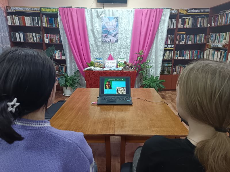 Библиотекарь Татьяна Викторовна Буданаева пригласили юных гостей отправиться в захватывающее путешествие сквозь миллионы лет, чтобы познакомиться с удивительными обитателями нашей планеты – динозаврами.