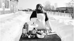 У входа в библиотеку работала уличная экспозиция "Выдача хлеба". Сотрудники культуры продемонстрировали фрагмент жизни блокадного города, чтобы каждый мог увидеть символ мужества ленинградцев - 125-граммовый паек. Морозный воздух и сугробы добавили инсталляции реализма, напоминая о страшной зиме 1941-го года. Библиотекарь Елена Ивановна Куканкова рассказала присутствующим о составе блокадного хлеба и о том, как менялись нормы выдачи.