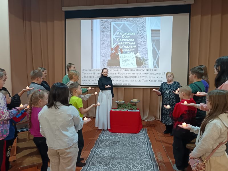 Особое внимание было уделено истории ленинградской школьницы Тани Савичевой, чьи дневниковые записи стали символом страданий и стойкости жителей блокадного города. Дети узнали о скудных нормах хлеба, о ценности хлебных карточек в то время. Прозвучали проникновенные стихи Ольги Берггольц, чьё имя неразрывно связано с блокадным Ленинградом, а также фрагменты легендарной седьмой симфонии Дмитрия Шостаковича, написанной в годы войны. Присутствующие познакомились с историей памятника «Разорванное кольцо», который олицетворяет несгибаемый дух ленинградцев, продолжавших бороться за жизнь вопреки всему.