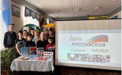 Сотрудница библиотеки Вероника Денисовна Голубева пригласила гостей на мероприятие, посвященное дню Российской науки. С помощью слайд-презентации ребята отправились в путешествие и познакомились с некоторыми научными открытиями, которые потрясли мир: «Теория о природе Земли», «Периодический закон химических элементов», «Открытие вирусов», «Условный рефлекс», «Биосфера и ноосфера», «Учение о центрах происхождения культурных растений», «Открытие берестяных грамот в Новгороде», «Низкотемпературная сверхпроводимость и сверхтекучесть жидкого гелия», «Вклад Академии наук в атомный проект», «Разработка полупроводниковых гетероструктур».