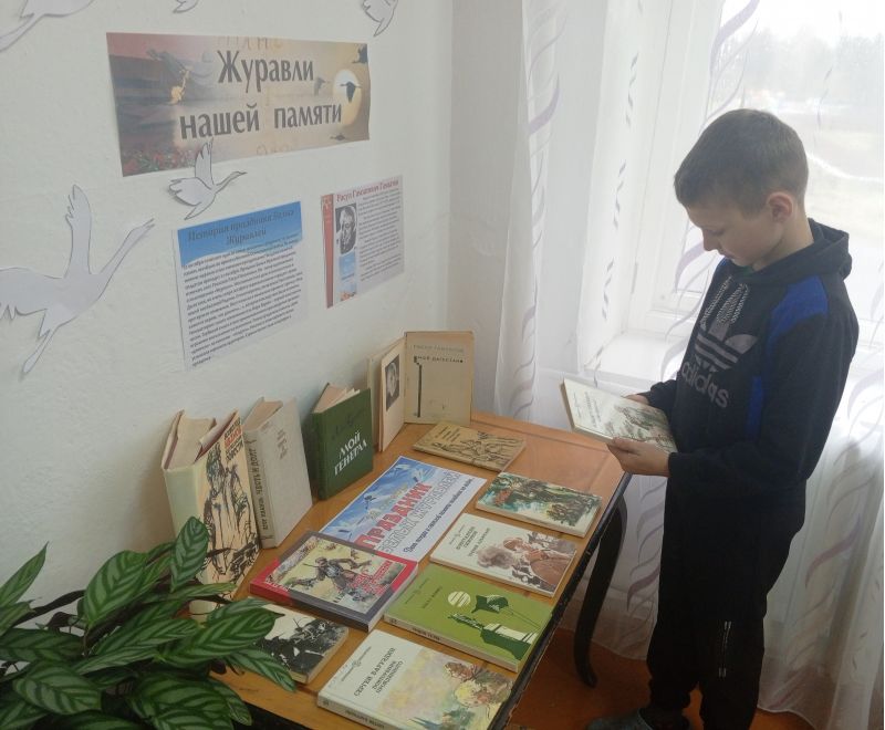 Название «Белые Журавли» взято из известной песни «Журавли», написанной на стихи поэта. Журавли в народных легендах и сказаниях символизируют мир и благополучие. Там, где эти птицы, там свет, добро и надежда на прекрасное будущее. К этой памятной дате была оформлена книжная выставка, на которой расположилась литература военной тематики. Делая обзор выставки, библиотекарь рассказала об истории праздника, познакомила читателей с книгами о военном времени и биографией Расула Гамзатова.