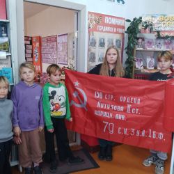 28 октября в Воскресенской библиотеке – филиале № 6  в рамках Всероссийской  историко – патриотической  акции "Линейка памяти", посвященной 80-й годовщине Победы в Великой Отечественной войне, прошёл патриотический час "Знамя Победы". Библиотекарь Горяева О. В. рассказала об истории возникновения Знамени Победы, особое внимание уделила знаменам, которые были подняты над Рейхстагом в мае 1945 года. Это событие стало символом окончательной победы над фашизмом и освобождения нашей страны.