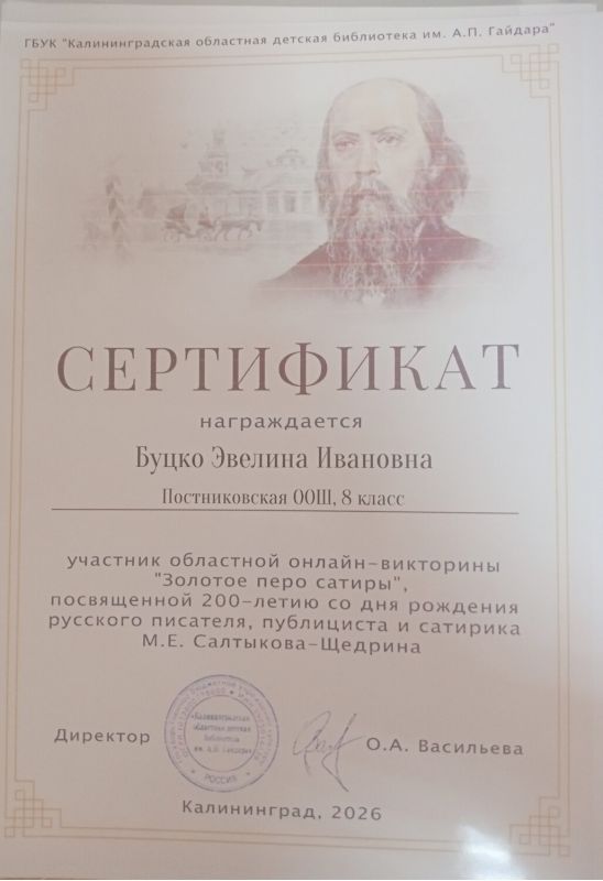 В 2026 году исполняется 200 лет со дня рождения Михаила Евграфовича Салтыкова‑Щедрина (1826–1889) — писателя, чьё слово было острее клинка, а образы — точнее зеркала. Его сатира не устарела: она по‑прежнему заставляет думать, смеяться — и меняться. ГБУК "Калининградская областная детская библиотека им. А.П. Гайдара" запустила тематическую онлайн-викторину "Золотое слово сатиры".