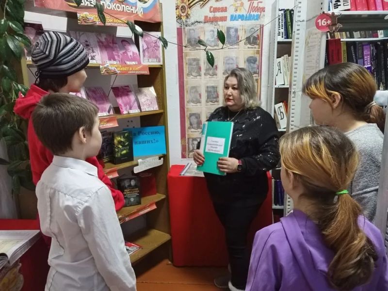 Библиотекарь Горяева О. В. рассказала, когда и почему началась Специальная военная операция на Украине, о мужестве и героизме военнослужащих, участвующих в ней. К мероприятию подготовлена книжная выставка «За Россию, за наших!». Участники мероприятия прослушали стихи о патриотизме, воинском долге, службе во благо Отечества, о подвиге наших солдат, которые, взяв в руки оружие, встали на защиту интересов нашей Родины.
