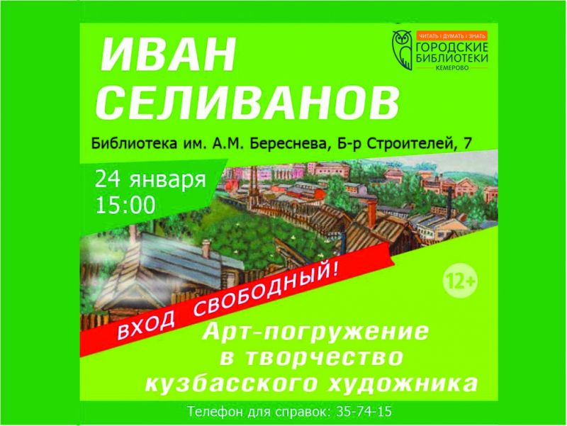 24 января 2026 года в 15:00 в Детской библиотеке им. А. М. Береснева (б-р Строителей, 7) состоится литературно-художественное мероприятие «Сокровенный человек», посвященное жизни и творчеству самобытного кузбасского художника Ивана Егоровича Селиванова.