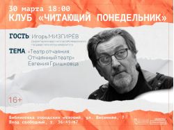30 марта в 18:00 в Библиотеке городских историй (ул. Весенняя, 7) состоится встреча клуба «Читающий понедельник». Встреча для тех, кто соскучился по живому общению и разговорам о настоящей литературе.