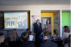 Мероприятие было организовано совместно со школой и Советом ветеранов посёлка. Гость библиотеки - председатель общественной организации Совета ветеранов Центрального района г.Кемерово рассказал о своей многолетней работе над книгой.