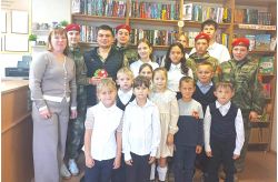 Младший сержант контрактной службы, заместитель командира взвода с позывным «Кипиш» вернулся на Родину после ранения и любезно согласился и нашел время для встречи с ребятами. Девушки из отряда «Юная армия» прочитали стихотворения в поддержку и укрепления солдатского духа.