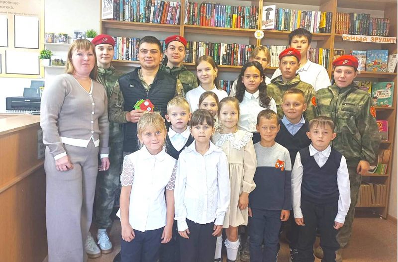 В библиотеке села Барановка, совместно со школой, состоялась встреча школьников с участником специальной военной операции «Наследие СВОих. Герои рядом». На встрече присутствовали учащиеся старших и младших классов, а также отряд «Юная армия».