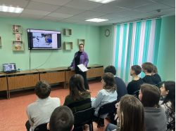Библиотекарь познакомила школьников с волонтёрским отрядом «Волонтёры Победы имени Ивана Антонова», который действует здесь с 2017 года. Отряд активно участвует в сохранении истории и проводит важные акции, помогающие ветеранам и пожилым жителям посёлка.