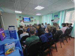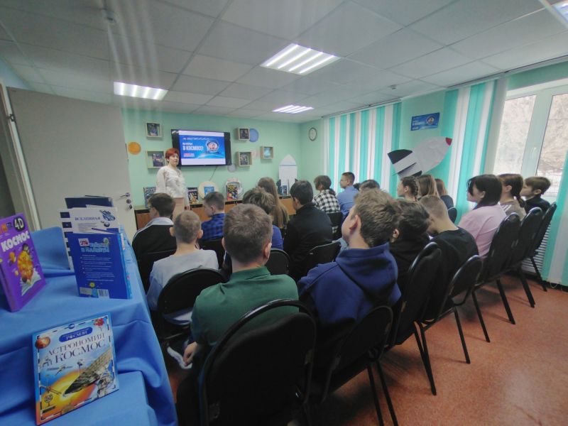 На время встречи читальный зал превратился в настоящий космический корабль. Участники отправились в интеллектуальное путешествие, где искали ответы на вопросы, «парящие» на планетах, и зачитывали их из книг. Школьники вспомнили имена кузбасских космонавтов, а затем приняли участие в увлекательной викторине «Что скрывает космос?».