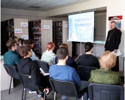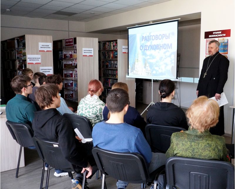 Встречу провёл отец Валерий, настоятель храма Донской иконы Божией Матери. В качестве слушателей выступили ребята из поискового отряда «Победа».