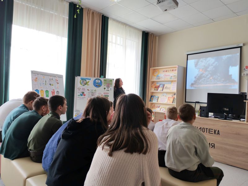 В течение дня для всех желающих работал книжный развал «Наш дом – планета Земля». Юные читатели открыли для себя богатство природных ресурсов и узнали о том, как важно беречь этот хрупкий баланс. Особый интерес вызвали информационные эко-переменки: на экране транслировались ролики и мультфильмы об экологических проблемах, возникающих по вине человека, которые никого не оставили равнодушным.
