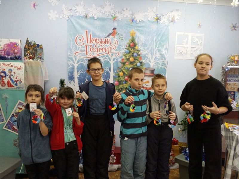 14 декабря, в преддверии празднования Нового года, в библиотеке-филиале № 1 состоялось игровое путешествие по станциям «Затеи у новогодней ёлочки» для ребят из социально-реабилитационного центра «Доверие». Мальчишки и девчонки получили маршрутный лист и отправились выполнять весёлые и познавательные испытания на новогодних станциях. Они узнали о том, откуда появился обычай украшать ёлку, как изготавливают новогодние игрушки и историю их создания, вспомнят, откуда пришёл Дед Мороз, и как его называют в разных странах. Вместо баллов они получали украшения — шары для новогодней ёлочки. Участники мероприятия, продемонстрировав эрудицию, находчивость и ловкость, успешно прошли все станции. На скорость очистили территорию своей команды в игре «Лови снежок», ответили на вопросы викторины «Страна зимних сказок», вслепую вернули пуговицы снеговику и добрались до финиша. Собрав все шары, дети выбрали и украсили «ёлочку» и встали в дружный и весёлый хоровод. В конце игрового путешествия каждый смог создать собственную ёлочную игрушку «Новогодний веночек» из синельной проволоки. Ребята получили необходимый заряд положительных эмоций и отличного праздничного настроения!