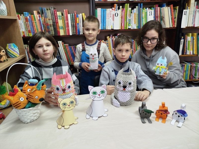 1 марта в центральной детской библиотеке прошло очередное творческое занятие по модульному оригами в рамках кружка «Бумажные фантазии», на котором ребята делали поделку «А у нас такая кошка» ко Дню кошек в России. Кошки – наши четвероногие друзья. Красивые, независимые, преданные, игривые и ласковые кошки очаровывают детей и взрослых своей неповторимой грацией и совершенством. Эти животные – отличный источник хорошего настроения и радости. Дети узнали об истории происхождения домашней кошки, почему в древности кошкам приписывали волшебную силу, почему египтяне считали её священным животным, и как она стала домашним любимцем. Во время работы участники кружка с удовольствием рассказывали о своих домашних питомцах, делились интересными историями из их жизни, обменивались советами по воспитанию своих любимцев. Все вместе вспомнили книги, где один из героев кот или кошка. Сколько теплоты, любви, творчества и фантазии вложили дети в свои работы. Все поделки получились очень разнообразными, яркими и забавными.