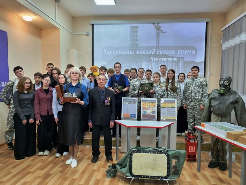 22 апреля центральную городскую библиотеку им.Н.К.Крупской посетили учащиеся школы № 2, 19 и гимназии № 18. Почётным гостем часа истории «Чернобыль: взгляд сквозь время» стал ликвидатор последствий Чернобыльской катастрофы, член Союза писателей России, поэт В.Д. Гуляев. Учащиеся посмотрели редкие кадры кинохроники на Чернобыльской атомной электростанции. Библиотекарь рассказала о патриотизме, самоотверженности участников ликвидации последствий катастрофы. Василий Дмитриевич поделился воспоминаниями о том, какую работу выполняли ликвидаторы аварии на Чернобыльской атомной электростанции, что видел своими глазами вокруг разрушенной станции. Поэт почитал своё стихотворение «Яблоки», написанное в Чернобыле. Школьники познакомились с экспонатами экспозиции: противогазом, защитным костюмом, прибором для контроля радиации, аптечкой первой помощи, камерой защитной детской, макетом простейшего укрытия. С помощью умной камеры они смогли определить назначение этих предметов в спасении жизни людей. Ребята поблагодарили Василия Дмитриевича за то, что в числе отряда ликвидаторов ценой своего здоровья он закрывал собой страну и весь мир от последствий радиации.