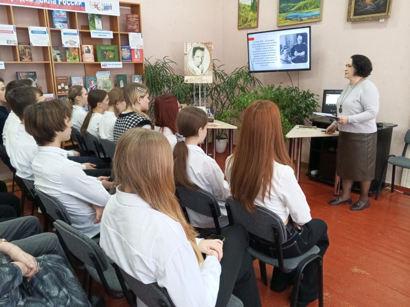 2 февраля в библиотеке-филиале № 2 для обучающихся 8 В класса МБОУ СОШ № 5 состоялся литературный час, посвященный военной прозе Михаила Александровича Шолохова.