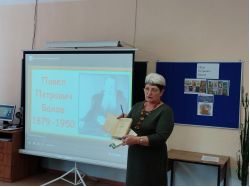 18 декабря в Металлурговской сельской библиотеке для учащихся 3 «Б» класса состоялось литературное путешествие «Павел Петрович Бажов - уральский «словесных дел мастер» Павлу Петровичу Бажову, уральскому сказителю, писателю, публицисту. Юные читатели познакомились с жизнью и творчеством писателя, с некоторыми народными словами, которые использовал Павел Бажов в сказах. Разобрали в чем отличие сказки от сказа. Ребята с большим интересом посмотрели отрывки мультфильмов по сказам «Каменный цветок», «Серебряное копытце» Продемонстрировали хорошие знания творчества писателя, ответив на вопросы викторины «Народная мудрость сказов Бажова». В завершение мероприятия юные читатели познакомились с книжной выставкой «Уральский сказитель». Мероприятие сопровождала презентация «Павел Петрович Бажов – уральский «словесных дел мастер». Классный руководитель Феоктистова О.В. и наши юные читатели выразили благодарность библиотекарю Яшкиной И.А. за интересное, увлекательное литературное путешествие. На мероприятии присутствовало 32 человека.