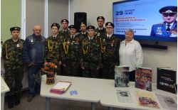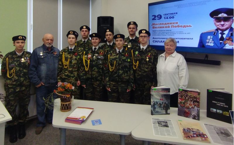 29 сентября в рамках Недели культуры, посвященной 80-летию Победы советского народа в Великой Отечественной войне 1941-1945 годов и 90-летию Пакта Рериха по защите культурных ценностей в военное и мирное время, в библиотеке им. Д.С. Лихачева состоялась творческая встреча с писателем, подполковником в отставке, создателем музея «Вехи истории» и поискового отряда «Сибиряк» Анатолием Никитовичем Силаковым. На встрече присутствовали кадетские классы школ №94 и №13.