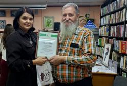 От директора МБУ «МИБС» г. Новокузнецка Надежды Васильевны Коношенко художнику вручили благодарственное письмо за вклад в культурную жизнь региона и глубокую благодарность за участие в организации выставки «Многообразие в искусстве».