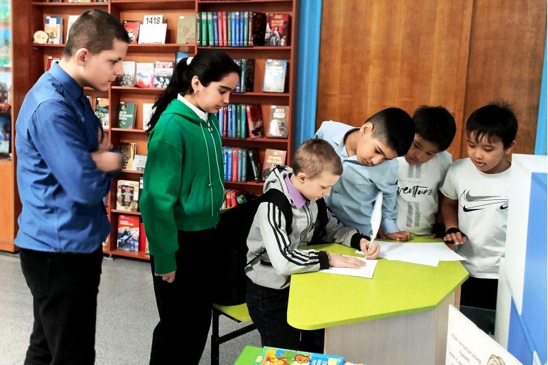 В завершение мероприятия школьники познакомились с книжной выставкой, развернутой в читальном зале, задавали вопросы.