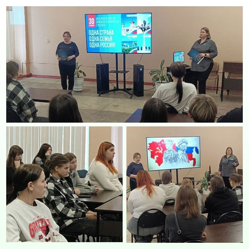 30 сентября в ОГТК состоялось информационно-патриотическое мероприятие, посвященное Дню воссоединения Донецкой и Луганской Народных Республик, Запорожской и Херсонской областей с Российской Федерацией. Присутствующим рассказали историю этого значимого события и непростого пути, который прошли жители Донбасса, стремясь вернуться в лоно исторической Родины и свободно говорить на родном русском языке.