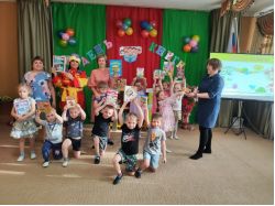 Библиотекарь Мельникова В. А. от лица коллектива Детской библиотеки выразила искреннюю благодарность воспитанникам, их родителям и педагогам детского сада за активное участие в акции и подаренные книги.