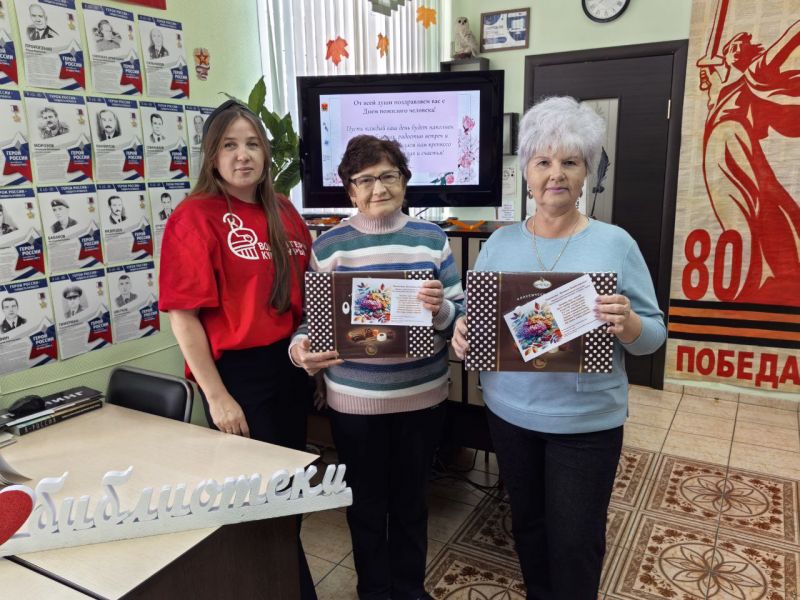 От администрации и профсоюзного комитета Централизованной библиотечной системы каждый ветеран получил в подарок коробку шоколадных конфет и праздничную открытку с теплыми пожеланиями.