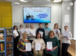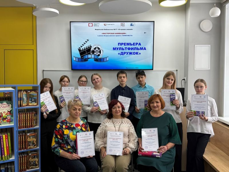 18 декабря в модельной библиотеке № 17 «Островок знаний», в рамках Всероссийского проекта «Гений места», состоялась премьера мультипликационного фильма «Дружок» по одноименному рассказу прокопьевского поэта и писателя, члена Союза писателей России Дины Абдулкабировны Нагорновой. Это годовой итог работы юных аниматоров под руководством талантливых спикеров. В их числе: актер Прокопьевского драматического театра им. Ленинского комсомола Константин Тимофеев, педагог информатики школы №31 Наталья Александровна Калмыкова, художник Централизованной библиотечной системы города Прокопьевска Светлана Сергеевна Фомченко и другие. «Мастерская анимации» помогла ребятам раскрыть свой творческий потенциал. Они сами написали сценарий, изготовили декорации, слепили из пластилина и озвучили персонажей. Первыми зрителями совместной работы дружной команды стали учащиеся школы № 31. Автор от всей души поблагодарила создателей мультфильма, который получился ярким и интересным. Участники и их наставники были награждены Благодарственными письмами от администрации МБУК «Централизованная библиотечная система» и сладкими подарками. Работа над проектом будет продолжена в 2026 году.