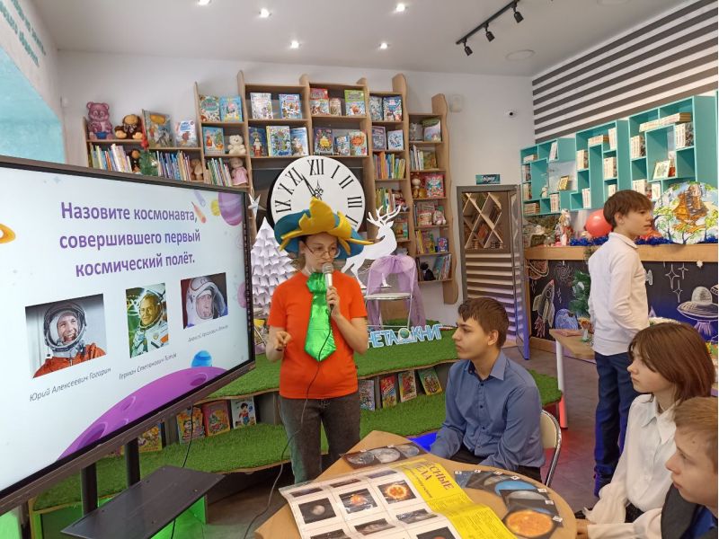 Незнайка проверял знания юных читателей с помощью красочного лото «Наша Вселенная» и космической видеовикторины «Просторы неизведанного».