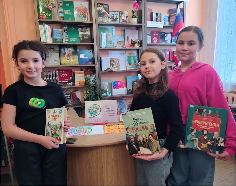 Ребята познакомились с книгами, рассказывающими о важных научных достижениях и открытиях Дмитрия Ивановича Менделеева, Михаила Васильевича Ломоносова и Сергея Павловича Королева, оказавших огромное влияние на науку и технику.