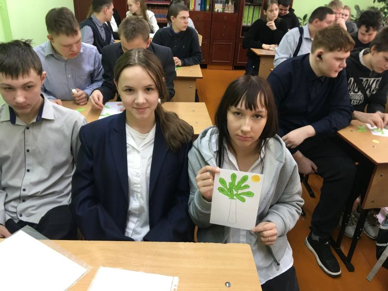 Совершая виртуальную экскурсию по Зенковскому парку, молодые люди знакомились с историей прокопьевского санатория, ставшего в годы войны вторым домом для детей блокадного города. Судьба удивительного человека - Мысякиной Людмилы Станиславовны, малолетней блокадницы живо затронула души юношей и девушек - они выразили желание посетить музей под открытым небом «11 Победных сосен». Свои чувства и эмоции отразили юные патриоты в изготовлении открытки в технике аппликации «Победная сосна».