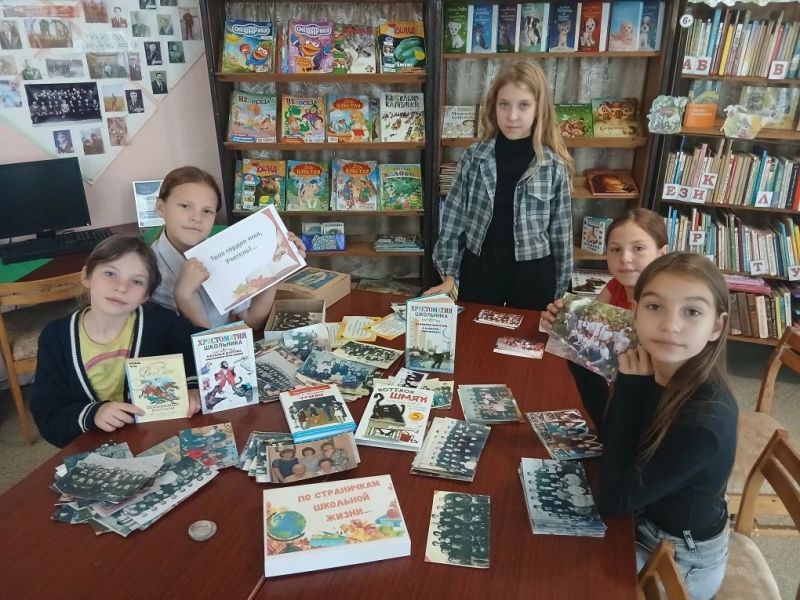 Помимо этого, участники мероприятия познакомились с литературой, посвященной образу учителя . Погрузиться в живую атмосферу школьной жизни помогли фотографии школьных лет.